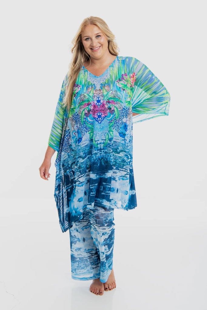 A stunning cover-up mesh kaftan in our exclusive print to complete your swim outfit.